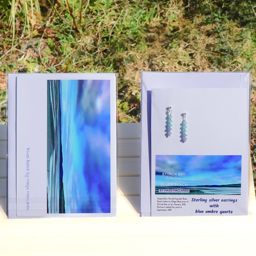Designed and created on the Isle of Bute, these earrings are part of the Ettrick Bay Collection, inspired by the photo art print “Blues Beach”. Pair them with the matching necklace to complete a co-ordinated, elegant set.